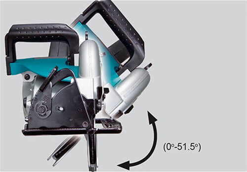 0°-51.5 bevel capacity with positive stops at 45° and 51.5° ideal for truss and rafter cut-outs