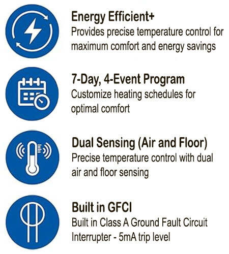 | Temperature Range | +41°F to +104°F (+5°C to +40°C) | Floor Limit Range | +41°F to +104°F (+5°C to +40°C) |