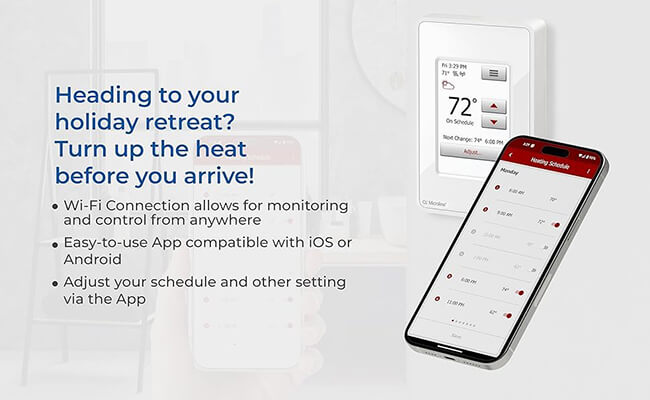 Delivers smart, intuitive control for electric floor heating systems. With app connectivity, voice assistant support, and detailed energy monitoring, it combines convenience, safety, and efficiency in a sleek touchscreen design.
